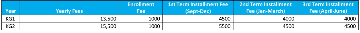 - Supplementary Fees like Books, online platform, educational tour, extracurricular activity, recognition, and graduation fee are charged separately.